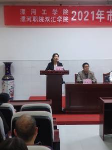 4月15日,漯河工学院、漯河职业技术学院双汇学院隆重举行2018级本科市场营销专业师生赴双汇集团实训启程仪式。校党委副书记薛存心,双汇集团人力资源中心副主任、校园招聘总监潘硕,双汇集团肉制品事业部综合部副部长宋丛干及校企有关部门领导出席仪式。双汇学院党总支书记张改亮主持会议。