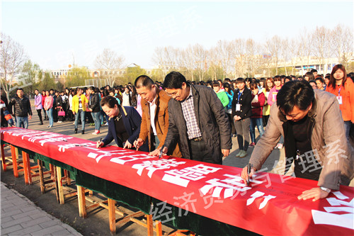经管系以我院党的群众路线教育实践活动开展为契机,集中全系师生于3月13日在西操场举行了“学雷锋日行一善,争做文明经管人”签字仪式。系领导兰涛、张改亮、李炎超、李文静出席了本次启动仪式。