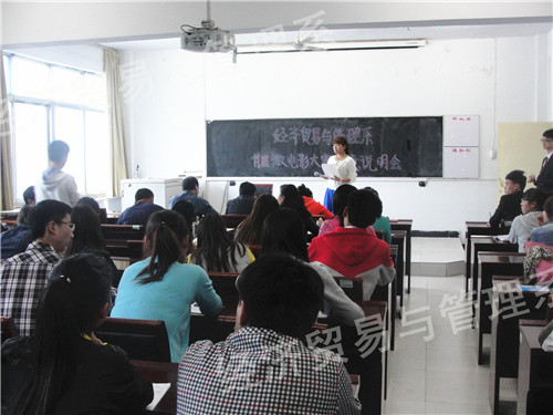 4月2日,经管系在1301教室进行了校园微电影创意说明会,系领导、辅导员出席,参加微电影大赛的学生导演、编剧、负责人与会。