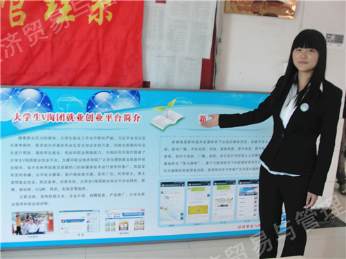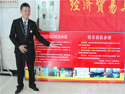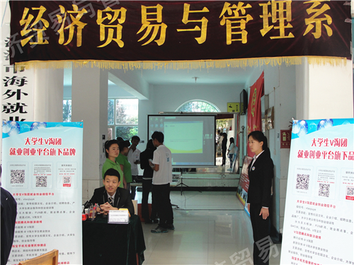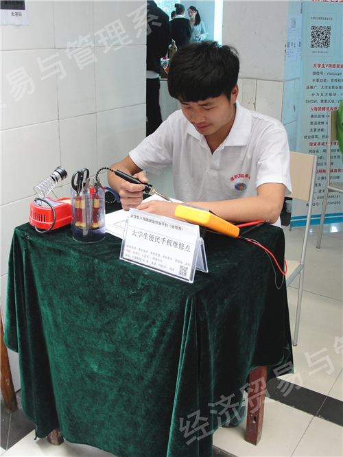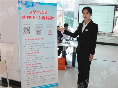 2014年5月15日上午,我院第六届大学生科技创新大赛作品展隆重开幕。经过经济贸易与管理系师生精心选拔,认真准备,最终决定由周丙雷、吴鹏星两位同学带队参与本届大学生科技创新大赛。他们分别负责“大学生V淘团就业创业平台”项目和“DIY环保充电器”项目。