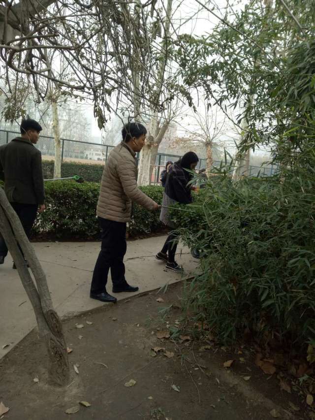 我系兰涛主任正在带领大家认真的寻找草丛中隐藏的垃圾,力求做到没有最好。