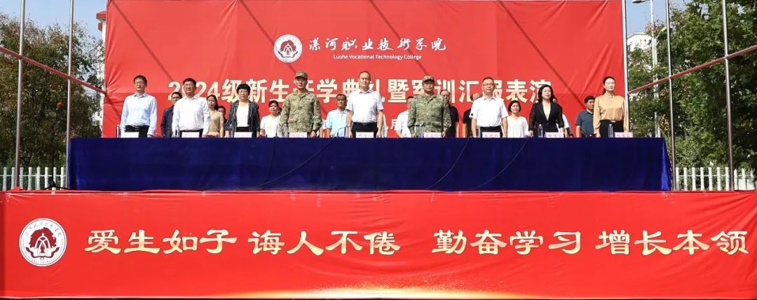 秋光为序,筑梦启航。9月20日上午,漯河职业技术学院2024级新生开学典礼暨军训总结表彰大会在学院西田径场隆重举行。党委副书记薛存心,党委委员、副院长朱晓红、吕爱华、程传蕊,党委委员、工会主席李兆强、纪委书记刘杏茹、组宣部长缪俊岭及各院(系)部负责同志、承训教官、2024级全体辅导员和新生参加典礼。开学典礼暨军训总结表彰大会由副院长程传蕊主持。