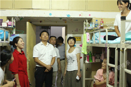 主管学生工作的李炎超主任深入宿舍慰问新生时,提醒大家初入大学校园,安全第一,谨防上当受骗。同时嘱咐同学们要认真聆听入学前的教育报告,调整作息时间,以便更好地投入课堂中去。在走访的过程中,主管教学的杨慧贞主任也亲切的关怀新生们,希望他们大学里要树立目标,努力学习,并积极参加活动,锻炼实践能力。