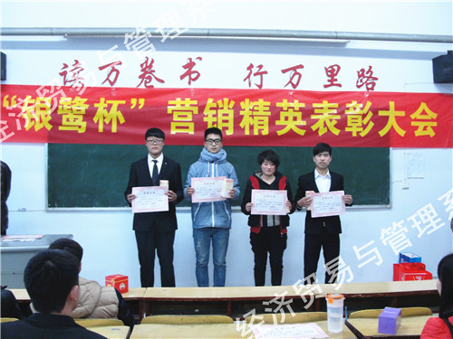 “银鹭杯”大学生精英赛是经济贸易与管理系联合银鹭食品集团举行的一次实战型的市场营销技能大赛,比赛历时10天。学生在遵守学院相关规定、不影响正常学习生活前提下自主选点,自主销售。这次竞赛活动,共销售“银鹭”产品365箱,实现销售收入11639元。