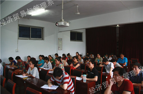 下午在经管系会议室,召开了由系党总支书记张改亮主讲的"三严三实"专题党课。全体教师参加了这次活动。