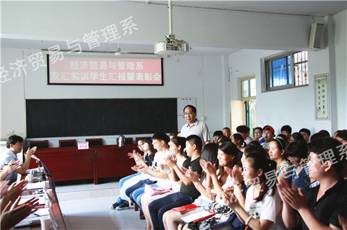 上午,经济贸易与管理系双汇实训学生汇报暨表彰会隆重举行。双汇发展副总裁兼肉制品事业部总经理游牧、销售副总王豪杰、销售部长董克明、就业处处长潘玉尚、实训中心主任张勃等出席会议。经济贸易与管理系优秀实训学生及学生代表70余人参加了会议。会议由经济贸易与管理系主任兰涛主持。
