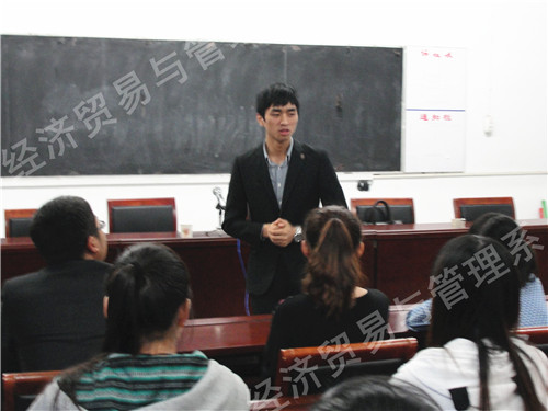 10月21日晚上,胡巧为经管系学生会、团总支、宿管委等学生社团做报告,就自己如何积极参与学校活动,长期坚持锻炼自己,并通过努力担任团总支副书记,不断成长的经历,激励学生干部要干一行爱一行,努力为师生服务,不断提升自我,让自己的综合素质得到提升,为将来就业奠定坚实基础。