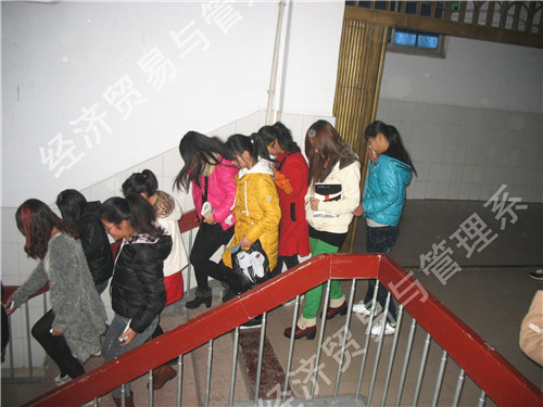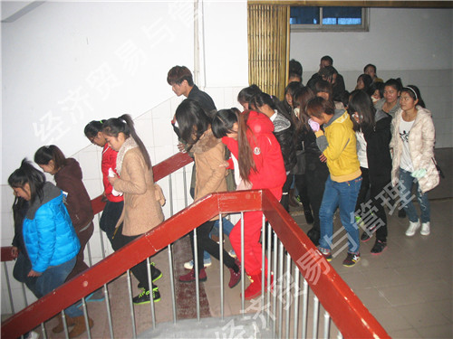 经济贸易与管理系于2013年11月21日下午4点55分,在一号教学楼开展了2013级新生安全疏散演练,以防患于未然,提高师生的安全意识和逃生能力。保证学校防火逃生应急疏散工作高效、有序地进行,做到灾害发生时最大限度地减少人员伤亡,有效强化学校紧急突发事件应对机制,确保师生生命财产安全。