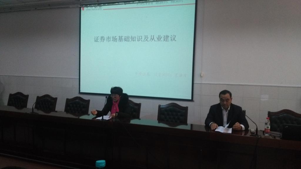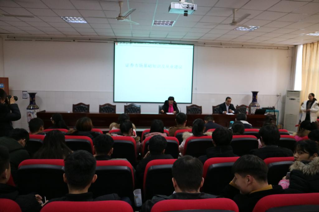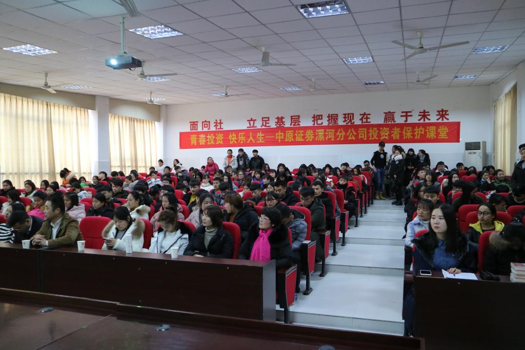 12月20日下午两点半,在3101会议室经管系与中原证券漯河分公司举办了"青春投资 快乐人生一中原证券投资者保护课堂"活动,为会计专业学生宣传了金融安全知识。