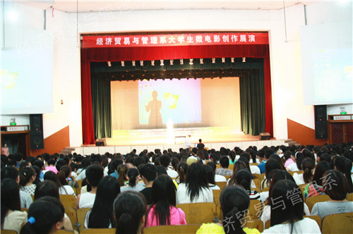 5月20日晚上,在学院礼堂经济贸易与管理系进行作品展演。院长顾文明、副院长朱晓红、代骅,学生处处长易春林等和经管系师生共同欣赏了11部充满正能量的微电影作品。