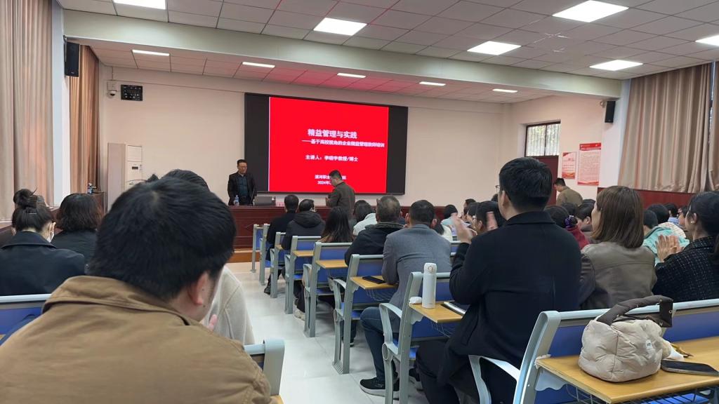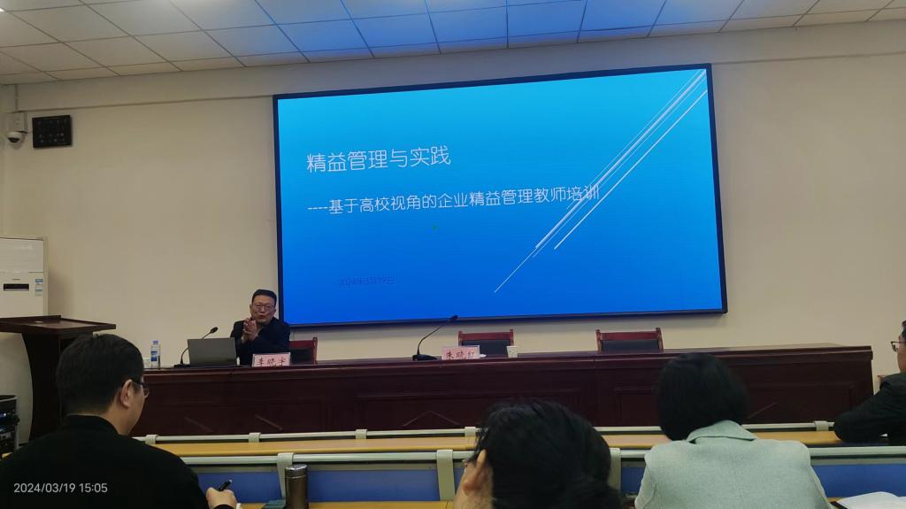 2024年3月19日下午,漯河职业技术学院在学院2107会议室举办了“精益管理与实践——基于高校视角的企业精益管理”主题教师培训会。培训会由李晓宇博士(教授)担任主讲,学院副校长朱晓红主持,工商管理系领导班子成员安国彦、李文静、李子剑及专业课教师共一行十八人参加了培训会。