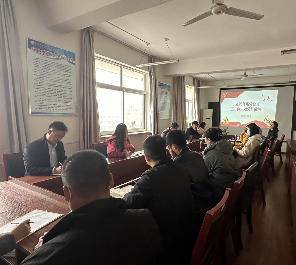 为进一步激发教师党员立足本职岗位、忠于职守、勇建新功。激发教师党员的工作热情,坚定理想信念、提升工作能力,漯河职业技术学院工商管理系教工党支部于2024年3月13日召开了主题党日活动,工商管理系安国彦主持会议,全体党员同志参会。