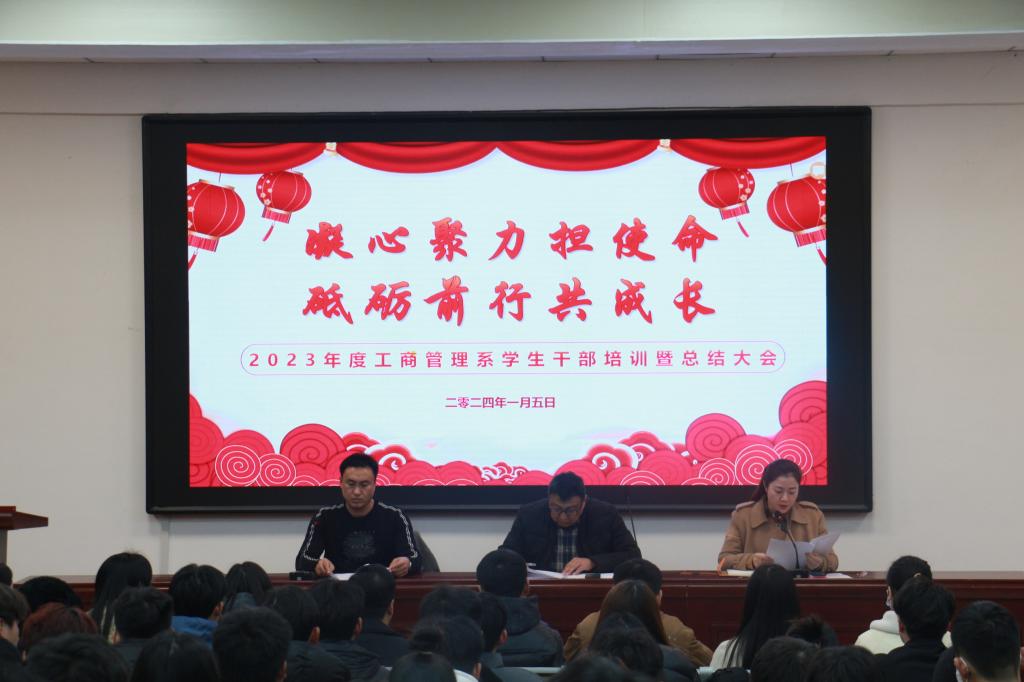 2024年1月5日下午,工商管理系以“凝心聚力担使命,砥砺前行共成长”为主题召开了2023年度学生干部工作培训暨总结大会。系党总支书记安国彦、党总支副书记李文静、团总支书记赵秋涛与一众辅导员出席会议,学生事务服务团、团总支、系宿管委、系心理健康协会负责人及社团团员参加会议。
