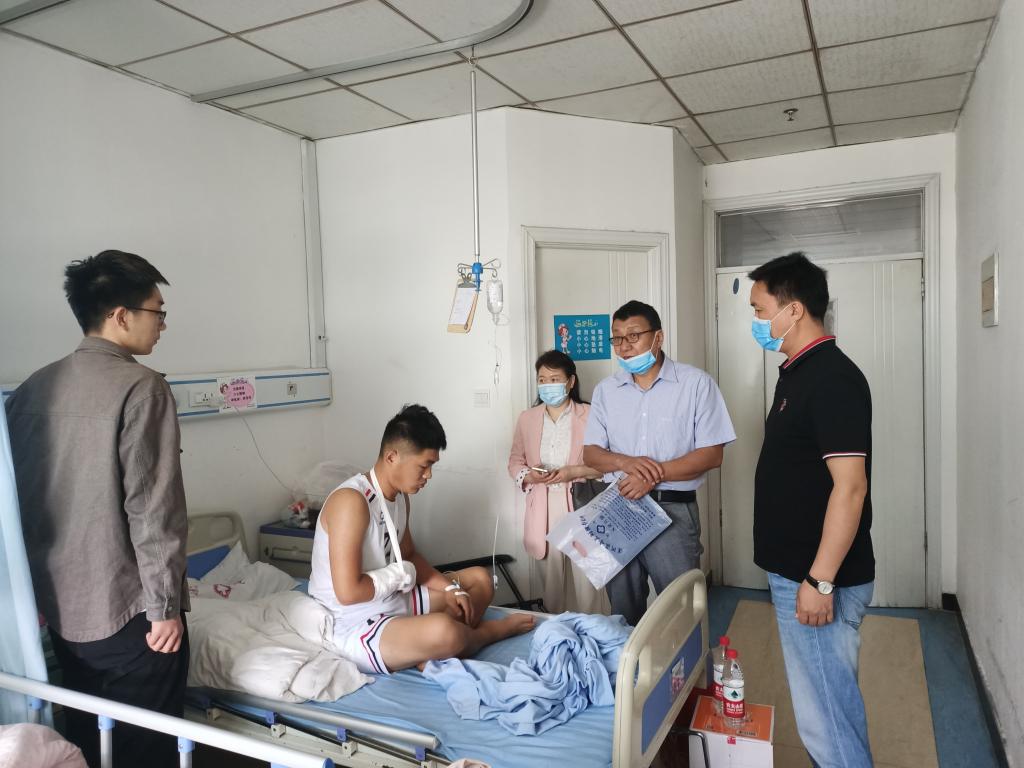 2021年5月21日上午,工商管理系领导班子部分成员在系党总支书记安国彦的带领下来到市医专第三附属医院,看望在学生篮球运动会中受伤的学生。