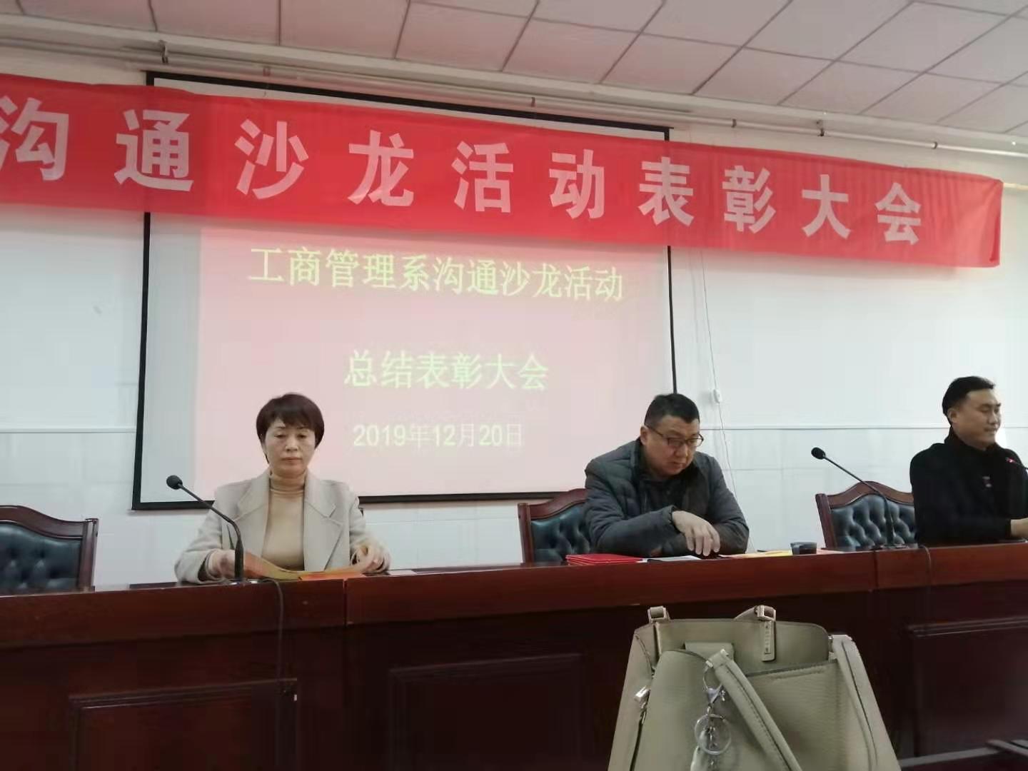 2019年12月20日下午,工商管理系在学校3101会议室举办了2019-2020学年第一学期沟通沙龙活动总结表彰大会,工商管理系领导班子成员和2019级各专业学生参加总结表彰大会,大会由系团总支书记赵秋涛主持。
