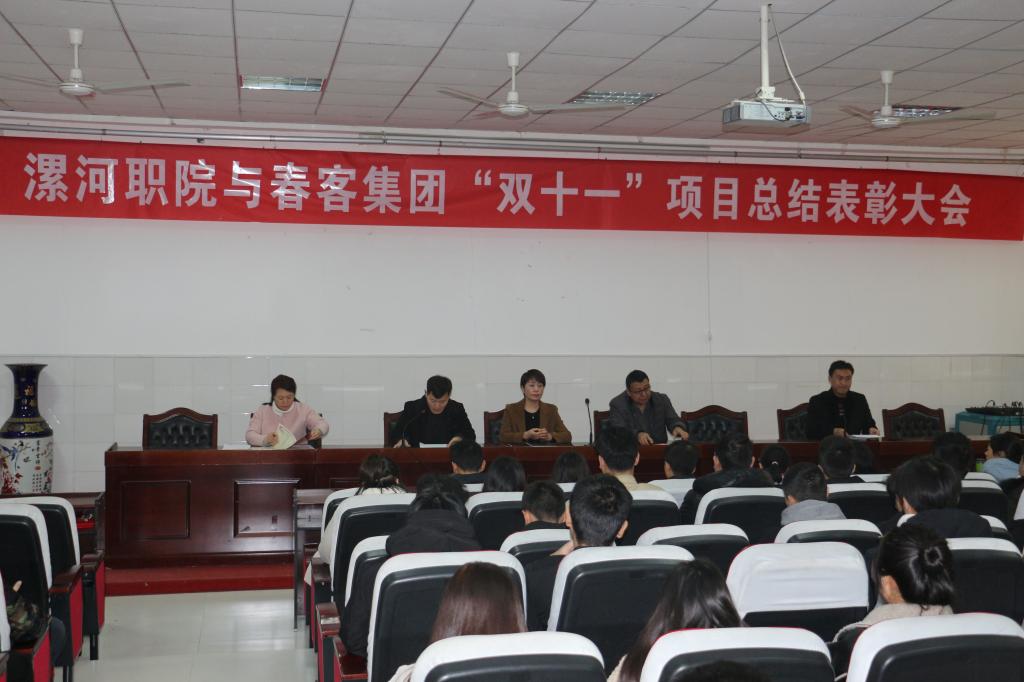 2019年12月6日上午,工商管理系在学校3101会议室举办了漯河职院与杭州春客集团“双十一”安踏营销项目总结表彰大会,工商管理系领导班子、2018级电子商务专业和网络营销专业参加项目的学生及部分教师参加了表彰会。会议由系团总支书记赵秋涛主持。