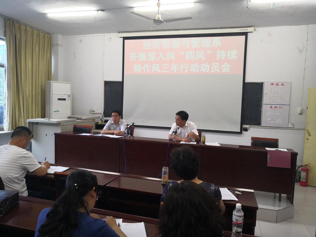 5月29日下午六点在1301会议室,经管系召开了深入纠“四风”持续转作风三年行动动员会。