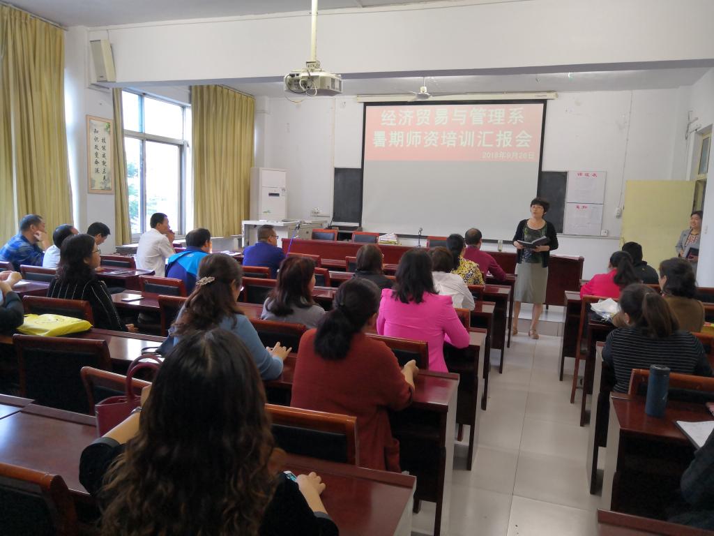 9月26日下午,经管系在1301会议室举办了2018年暑期师资培训汇报会。人事处芦晓星处长和刘音老师到场指导,经管系全体教职工参加了会议。