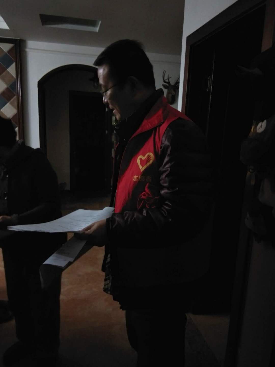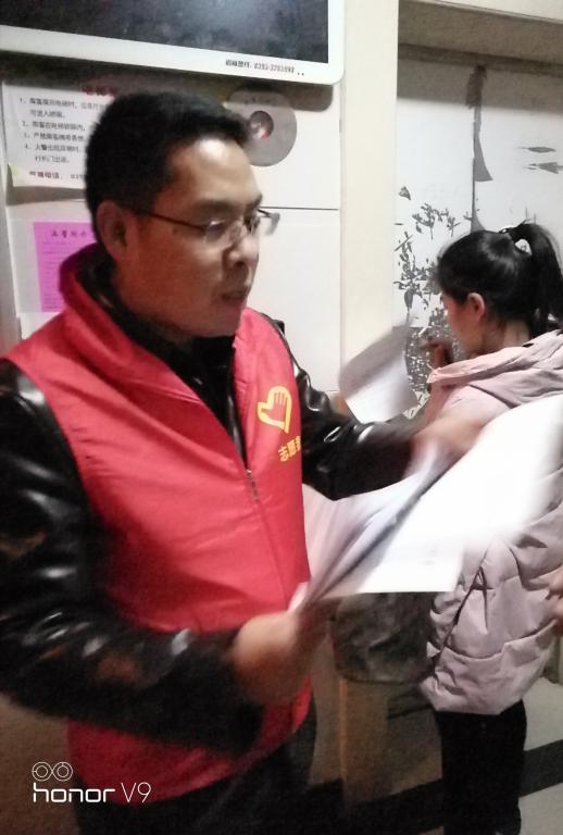 12月6日晚6:30,双汇学院老师到分包社区——建西社区兰乔迪亚小区开展创文入户宣传活动。