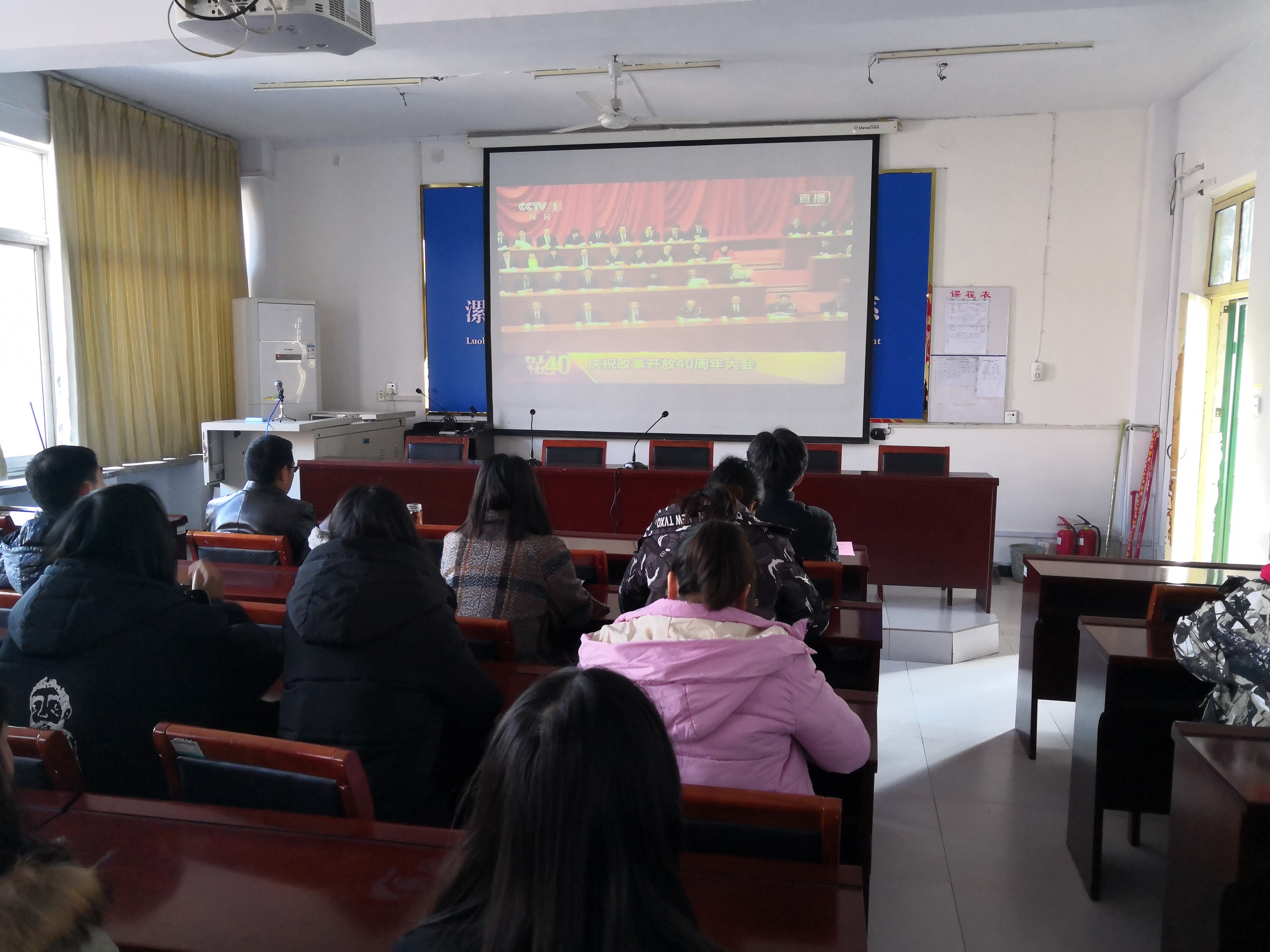 12月18日上午10点,双汇学院组织老师、学生预备党员和入党积极分子共30多人,在1301会议室观看了庆祝改革开放40周年大会。