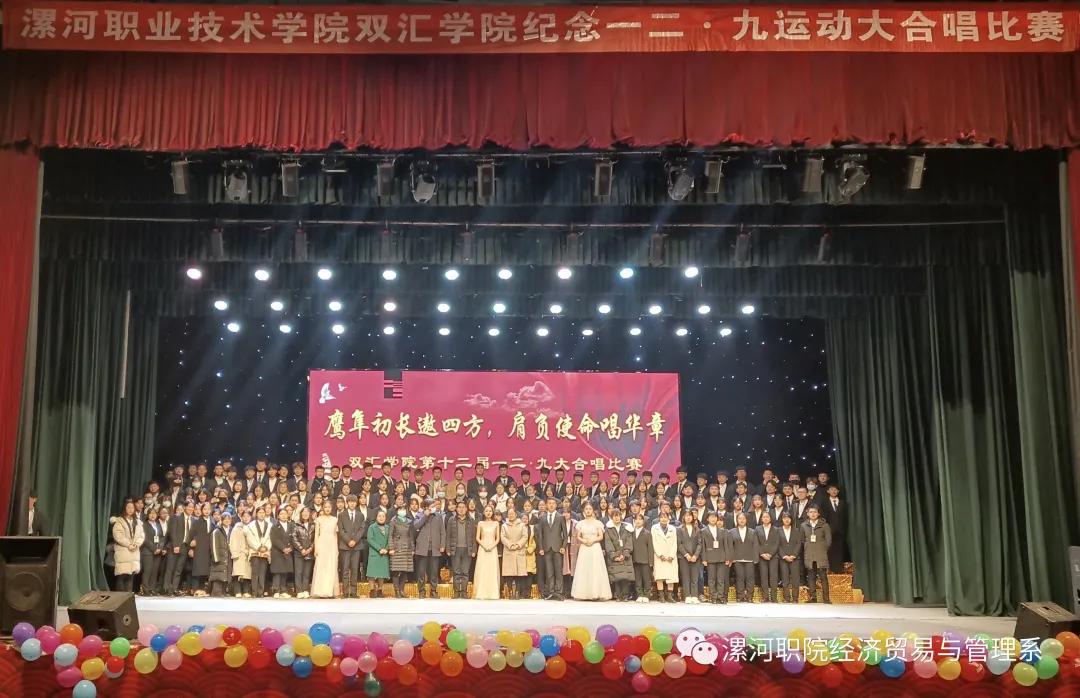 “鹰隼初长遨四方,肩负使命唱华章”,十二月四日在我们翘首以盼下,由漯河职业技术学院双汇学院团总支、学生会、宿管委三大社团在我校大礼堂联合举办的第十二届一二.九大合唱比赛如期而至。