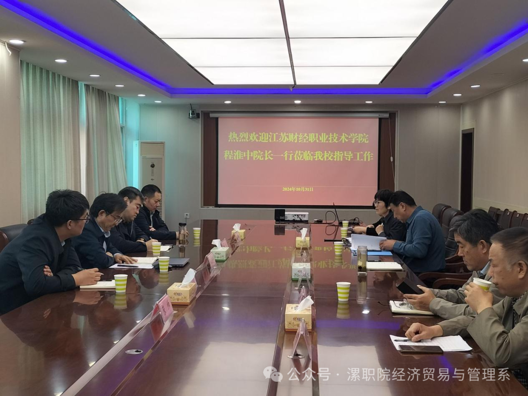 10月31日,江苏财经职业技术学院原校长程淮中教授莅临我校考察交流,我校副校长朱晓红、教务处副处长孟宏昌、经济贸易与管理系和工商管理系领导、教研室主任参加了交流活动。