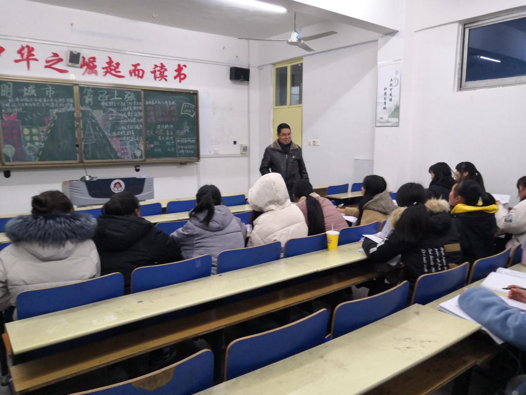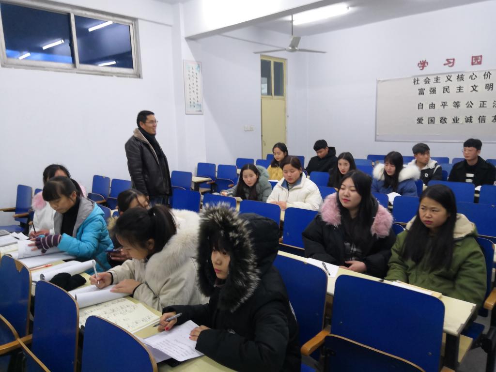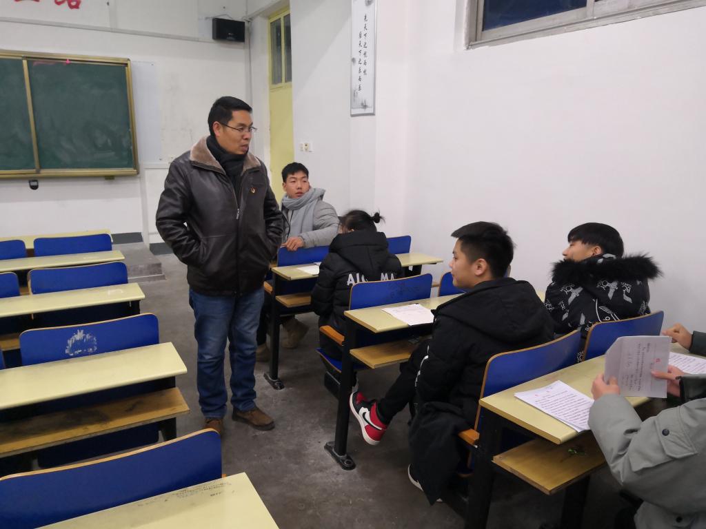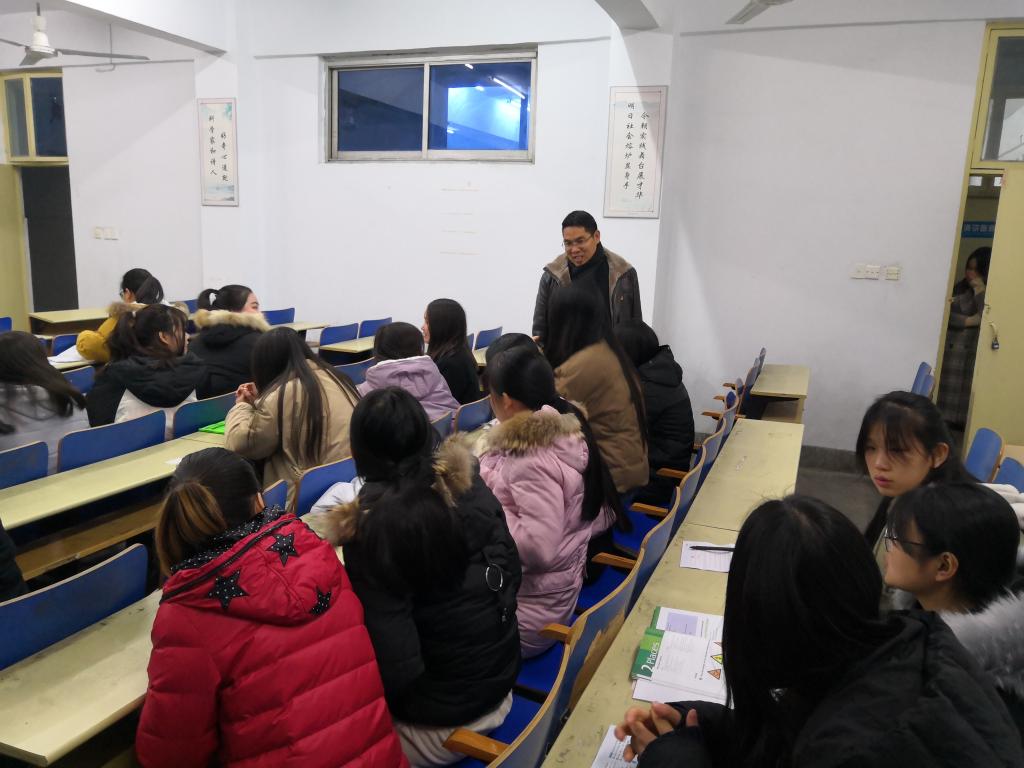 2018年12月13日晚自习,双汇学院党总支书记张改亮到自习教室抽查学生创文应知应会内容。