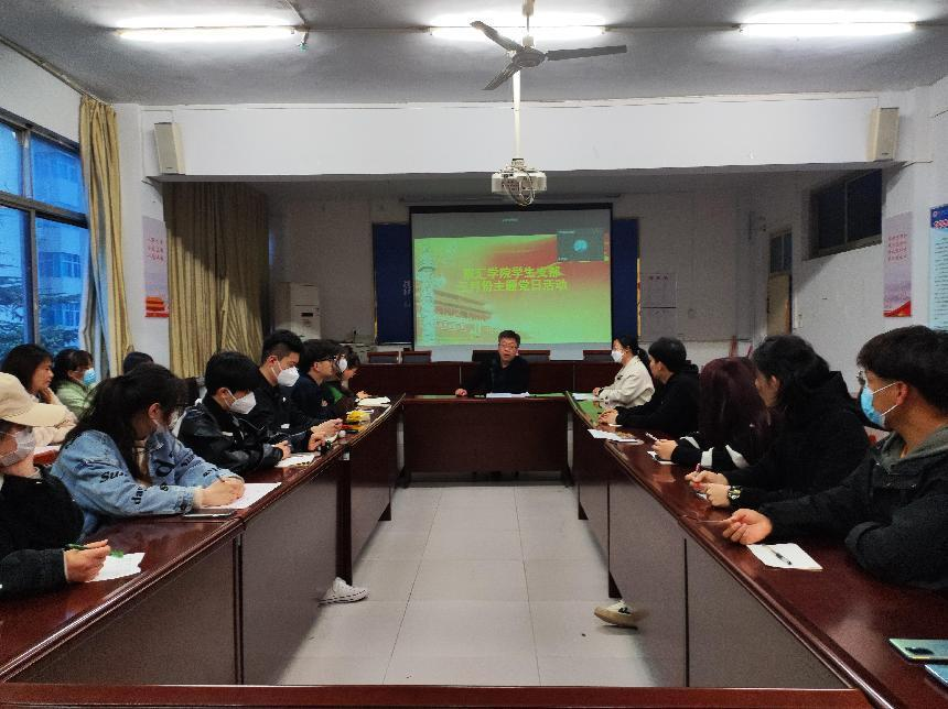2023328日下午六点,双汇学院学生支部在1301党建活动室召开三月份主题党日活动。此次是会议形式,采用线下和线上结合展开,全院在校学生党员参与线下会议,不在校学生党员参加腾讯会议线上会议。