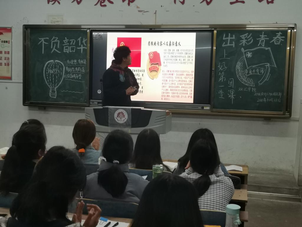 10月28日晚,2020级新生第一堂团课。这次团课的主题是引导团员青年坚定理想信念,完成角色转换,做好学业规划,帮助团员青年扣好大学生活的第一粒扣子。