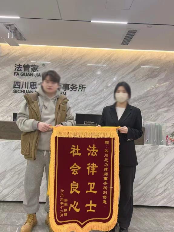 刘舒意,2020届毕业生,在校期间成绩优异,积极参与实践活动,培养了良好的沟通与组织能力,毕业后进入律师事务所担任商务经理。现就职于四川思力律师事务所,因工作优秀,2023年获赠“社会良心法律卫士”锦旗一面。